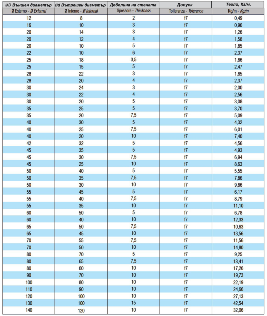 Вътрешен диаметър:от ф12мм. до ф140 мм.