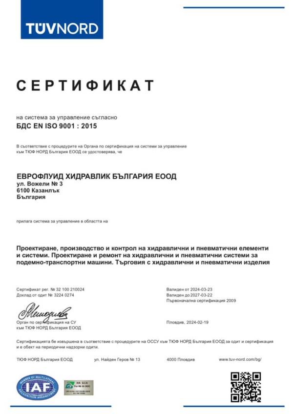 Вече повече от 20 години Еврофлуид се наложи на Българския и европейския пазар с производство на хидравлични станции и агрегати, командно управляващи блокове различни типове, хидравлични цилиндри, пневмо-хидравлични системи с мощности до 300 кВ и командна хидравлика с директно и пропорционално управление.